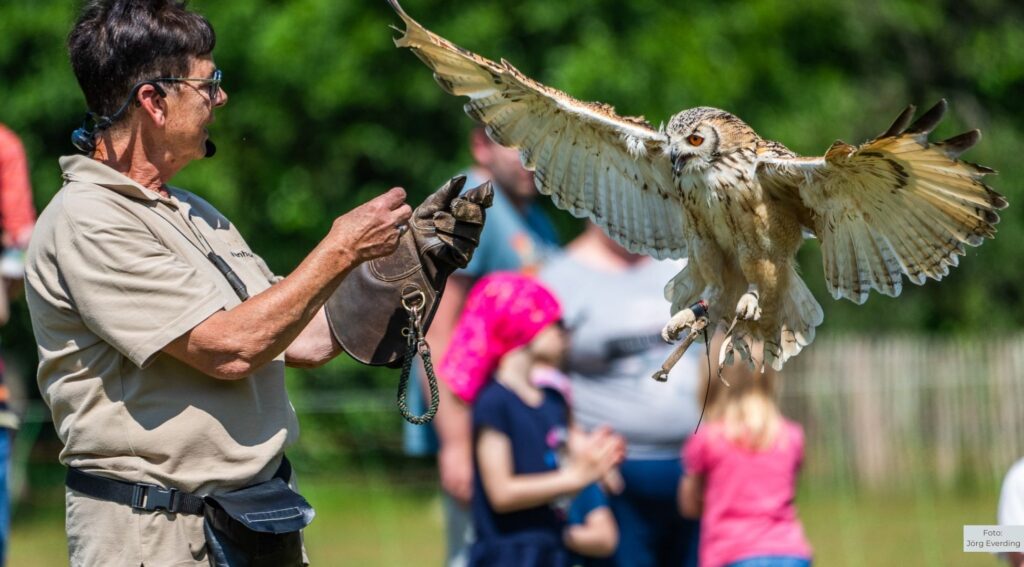 Nordhorn – Am Sonntag, den 30. März 2025, starten im Tierpark Nordhorn wieder die beliebten Falknervorführungen auf der großen Vechtewiese.