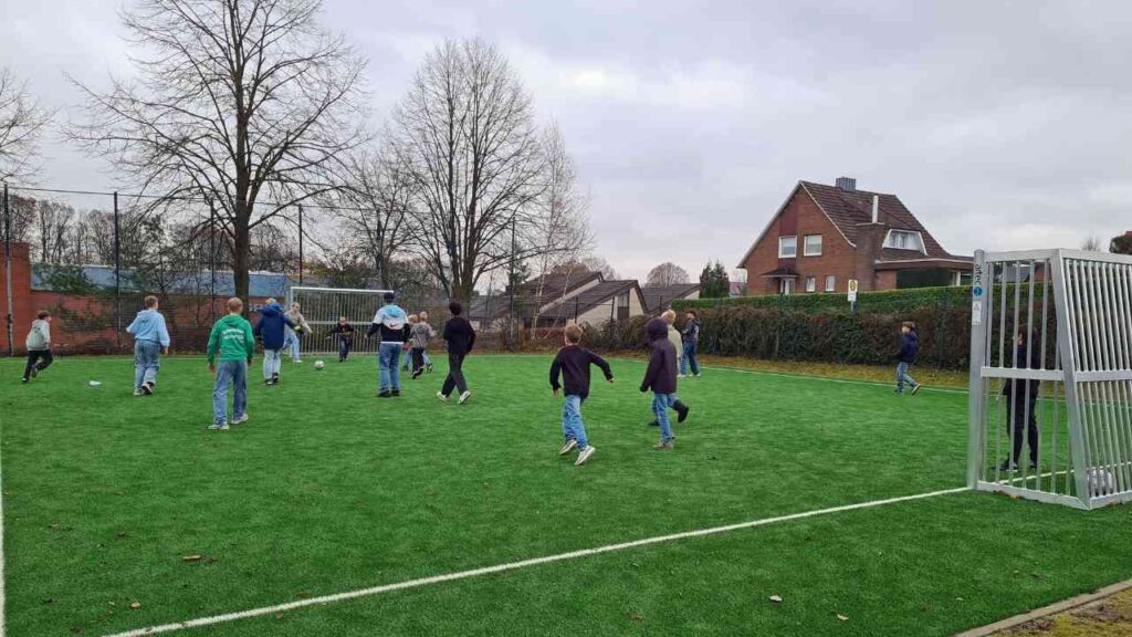 Nordhorn. Am Lise-Meitner-Gymnasium in Uelsen ist das neue Soccer-Feld seit dieser Woche der meistbesuchte Ort auf dem Schulhof. Kaum ertönt der Pausengong, strömen die Schülerinnen und Schüler begeistert auf das frisch errichtete Kunstrasenspielfeld, das mit seinen Edelstahl-Toren und der 17,4 mal 22 Meter großen Fläche ideale Bedingungen für temporeiche Ballwechsel bietet. Die LMG Uelsen Soccerfeld sorgt nicht nur für Freude bei den Kindern, sondern entlastet auch die Schule spürbar im Alltag.