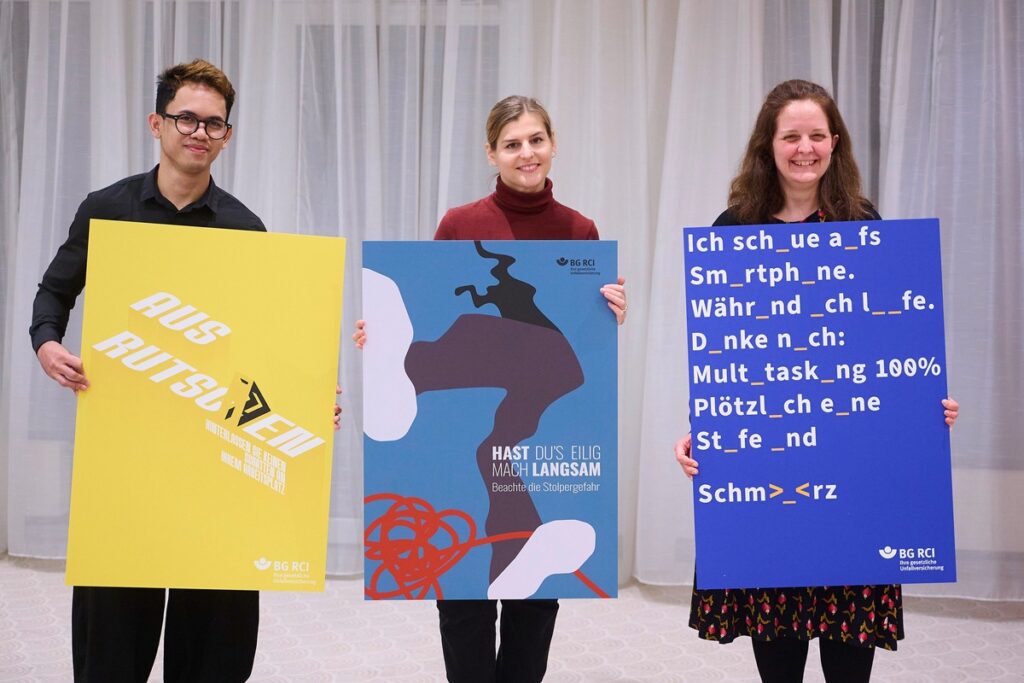 Heidelberg. Die Ergebnisse des dritten Arbeitsschutzplakatwettbewerbs der Berufsgenossenschaft Rohstoffe und chemische Industrie (BG RCI) sind nun bekannt. Die Gewinner sind Aleksandra Borzunova von der Hochschule Rhein-Waal, Channa Chheng von der University of Europe for Applied Sciences Berlin und Nina Maria Drangmeister von der Hochschule Trier. Der Plakatwettbewerb, der innovative Ansätze zur Vermeidung von Stolpern, Rutschen und Stürzen thematisiert, ist mit insgesamt 6.000 Euro dotiert.