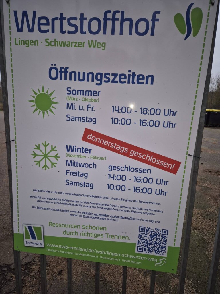 Öffnungszeiten Wertstoffhof Lingen