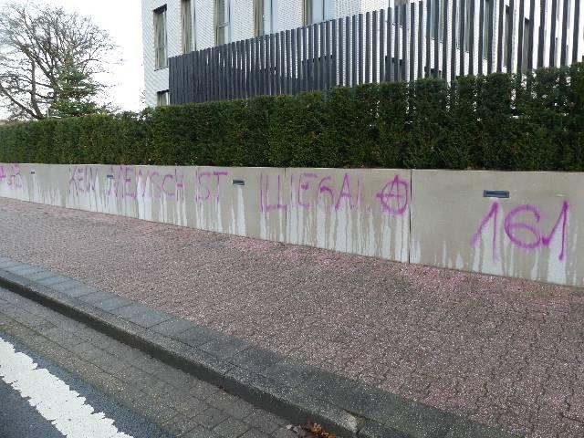 Unbekannte Täter brachten an Stromkästen, Bushaltestellen und Mauerwerken Farbschmierereien mit den Botschaften „Kein Mensch ist illegal“ und „161“ an. Insgesamt wurden neun Objekte beschädigt, was für zusätzliche Reinigungskosten und Aufwände durch die Stadtverwaltung sorgt. Die Polizei ermittelt und sucht Zeugen im Umfeld der betroffenen Bereiche.