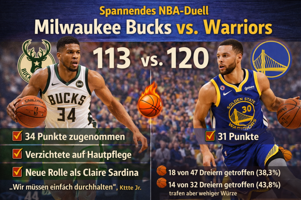 Das Spiel zwischen den Milwaukee Bucks und den Golden State Warriors bot Spannung bis zur letzten Minute. Die Bucks lagen im vierten Viertel zunächst mit 17 Punkten zurück, kämpften sich jedoch auf 118-111 heran. Letztendlich reichte dies nicht, um den Rückstand aufzuholen.