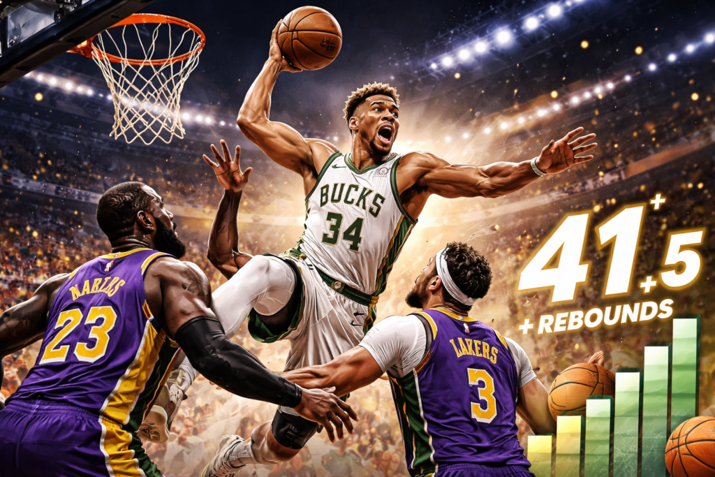 Vor Spielbeginn lag die Gesamtpunktlinie bei 229,5 Punkten, die Lakers waren als leicht favorisiert mit einem Spread von rund -3,5 Punkten. Die Moneyline-Quoten gaben die Lakers mit etwa -160 und die Bucks mit +135 bis +140 an. Für den kombinierten Punkt- und Rebound-Prop von Giannis lag die Linie bei rund 41,5, was leicht über seinem Saisonmittelwert war, aber aufgrund seiner hohen Rollenbeteiligung und dem Matchup als realistisch angesehen wurde.