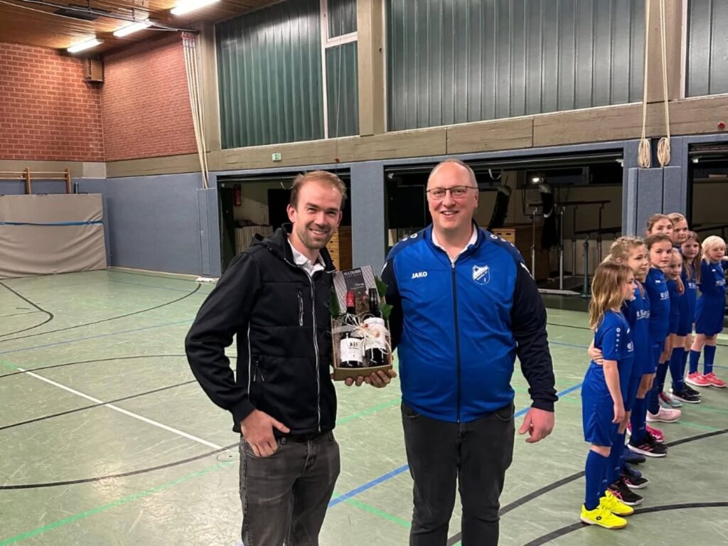 Ein Mitarbeiter des Unternehmens, Kilian Otte, nahm stellvertretend ein Präsent vom Verein entgegen. Damit wird die enge Bindung zwischen Verein und Sponsor auch symbolisch gefestigt.