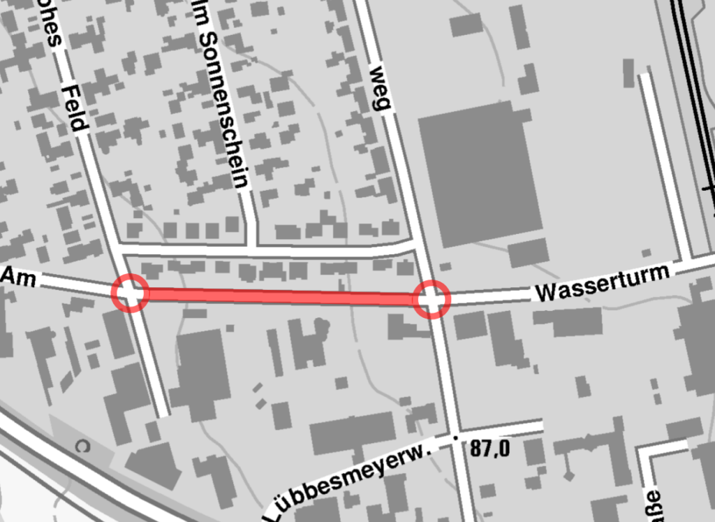 - Gestaltung der Knotenpunkte mit dem Hohen Feld und Lübbesmeyerweg
