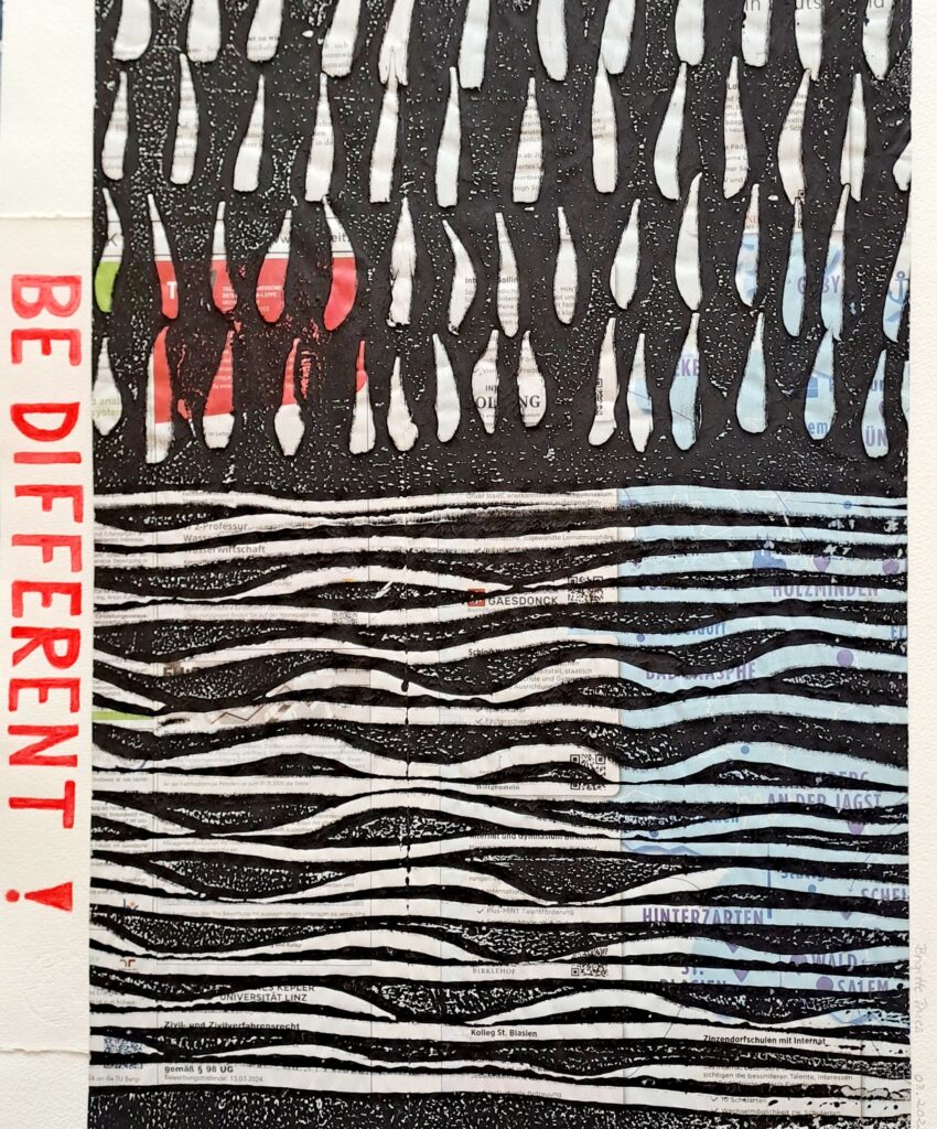 „Das vielseitige Material Papier erkunde ich in Malerei und experimentellen Drucktechniken und erwecke es mit besonderer Ausdruckskraft zum Leben“, sagte Brigitte Dues.