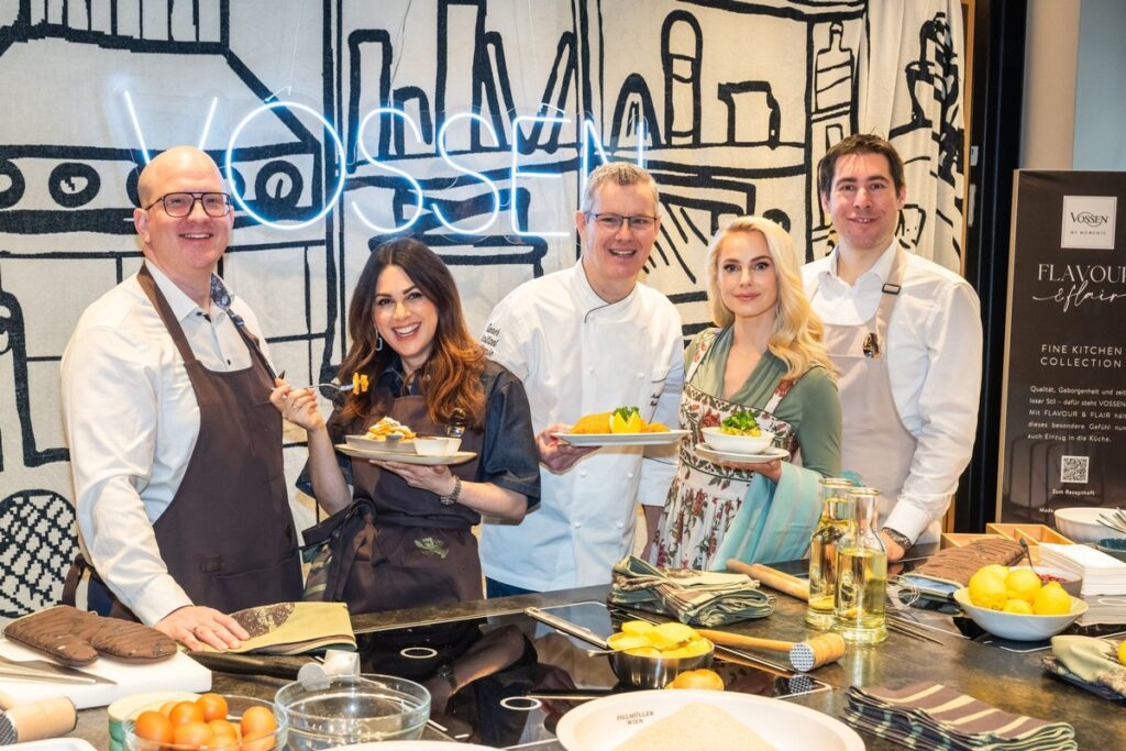 Die Präsentation der VOSSEN Küchentextilkollektion fand unter der Leitung von Küchenchef Markus Brunner statt. Die Köche und Gäste, darunter Viktoria Lauterbach, Silvia Schneider, Arabella Kiesbauer, Karin Teigl, Caroline Athanasiadis, Patricia Kaiser, Toni Polster, Stefan Koubek und Dominik Heinrich, bereiteten dabei echte Wiener Klassiker zu. Währenddessen wurden die neuen Küchentextilien, wie exklusive Küchentücher, Kochschürzen, Ofenhandschuhe und Topflappen, auf ihre Funktionalität, Farbechtheit und das Design geprüft.