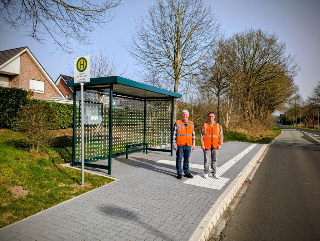Neben der Erschließung des Baugebiets wurde auch die Modernisierung der Bushaltestellen an der Engdener Straße abgeschlossen. Die Haltestelle „Hestrup – Am Kirchesch“ verfügt nun über ein neues Wartehäuschen und barrierearme, befestigte Bussteige auf beiden Straßenseiten. Die Kosten von rund 90.000 Euro werden zu 75 Prozent durch die Landesnahverkehrsgesellschaft Niedersachsen gefördert, die restlichen 25 Prozent teilen sich der Landkreis Grafschaft Bentheim und die Stadt Nordhorn.