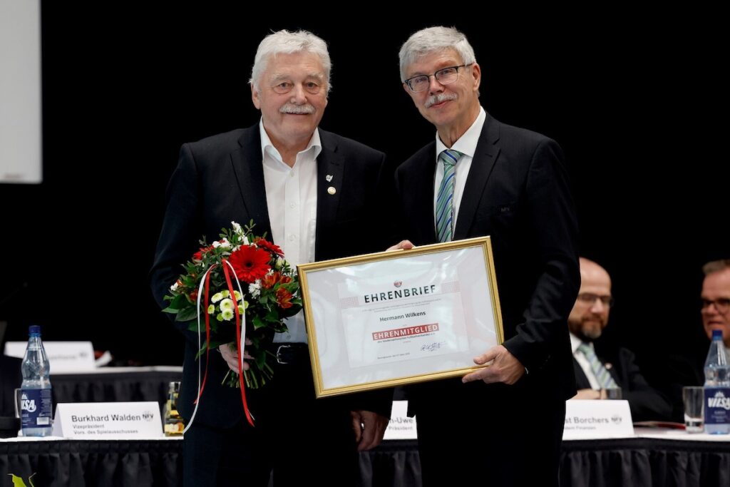 Auf dem vergangenen Verbandstag des Niedersächsischen Fußballverbandes (NFV) in Barsinghausen wurde Hermann Wilkens zum Ehrenmitglied ernannt. Der langjährige Vorsitzende der NFV-Ehrenamtskommission gehört nun zu einem erlesenen Kreis von Persönlichkeiten, die den niedersächsischen Fußball prägten.
