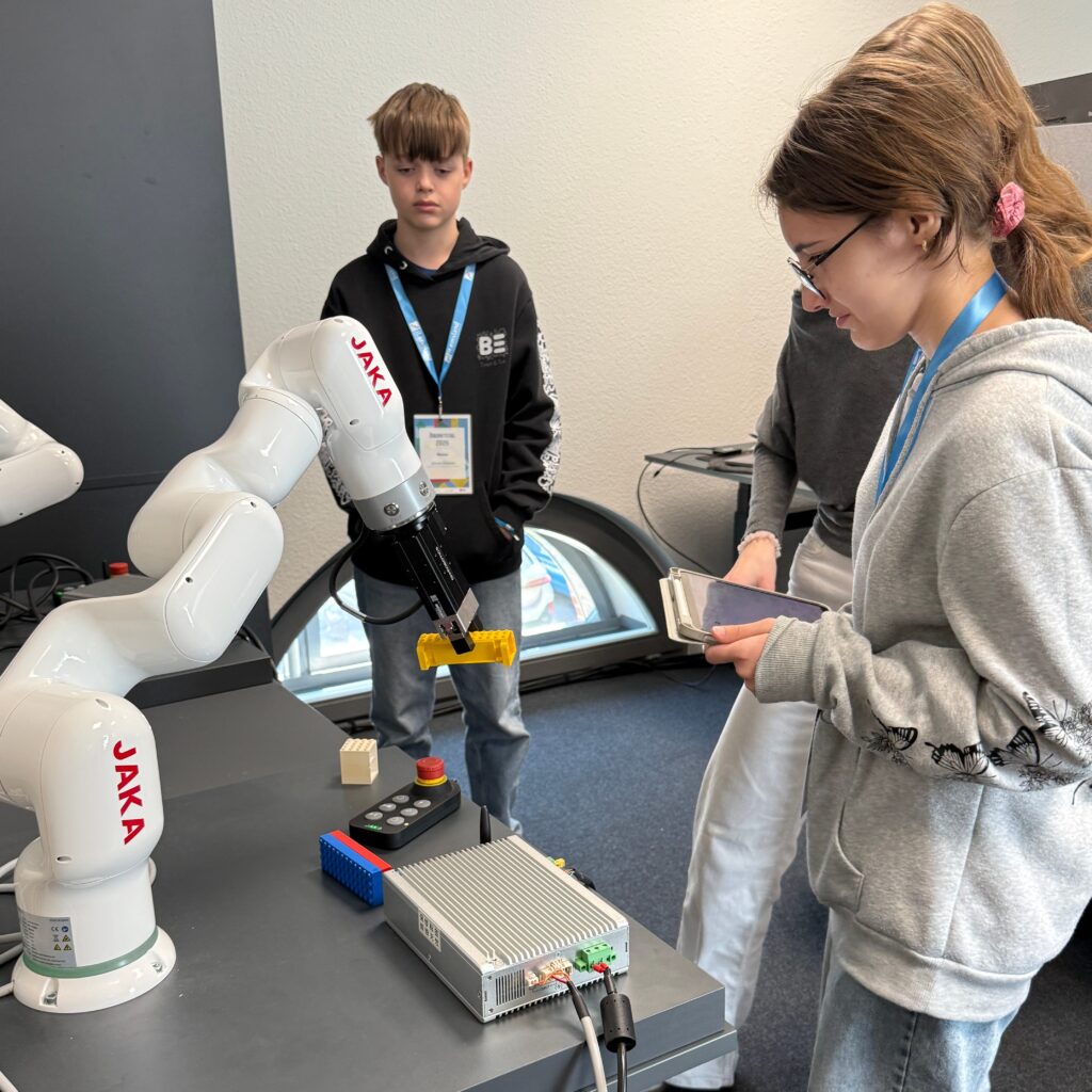 Im anschließenden Technologie-Check konnten die Teilnehmer die Digitalisierung hautnah erleben. Ob beim Steuern eines Roboterarms im DigiLab, beim Eintauchen in virtuelle Welten durch VR-Brillen oder bei einer Führung durch einen professionellen Serverraum – die Schüler hatten die Möglichkeit, moderne Technologien nicht nur zu sehen, sondern sie selbst auszuprobieren.