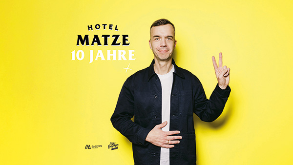 Der Interview-Podcast ‚Hotel Matze‘ von Matze Hielscher feiert 2026 sein zehnjähriges Bestehen. Anlässlich dieses Jubiläums werden acht Live-Shows in Deutschland, Österreich und der Schweiz veranstaltet, bei denen das Publikum hautnah dabei sein kann.