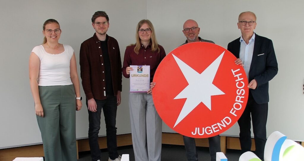 Im Kreishaus Meppen gratulierte Erster Kreisrat Martin Gerenkamp der talentierten Jungforscherin zu ihren beeindruckenden Leistungen und überreichte ihr den „Sonderpreis des emsländischen Landrats“. Begleitet wurde Paula Schoe von ihren Lehrkräften Nicole Schröder und Nils Kreienhop sowie Siegfried Wigger, dem Leiter des regionalen Wettbewerbs. Gerenkamp lobte das kreative wissenschaftliche Denken der Preisträgerin und ihren vielfältigen Talente in der Chemie und Schriftstellerei.