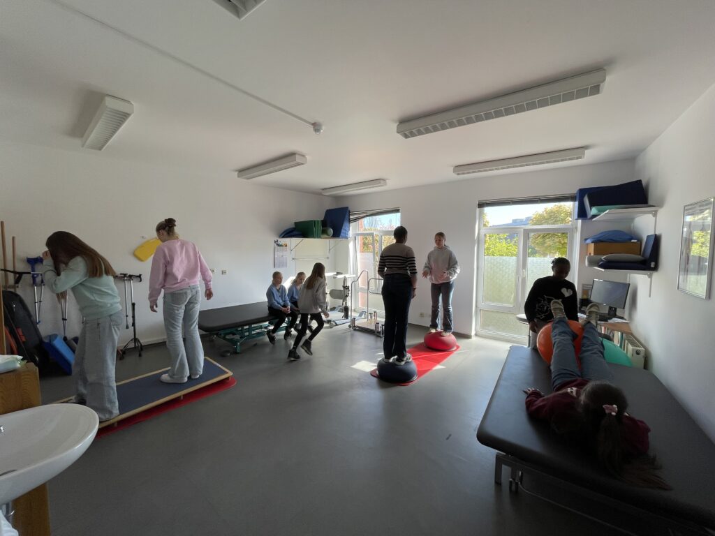 Ein zentraler Bestandteil des Tages war das Ausprobieren verschiedener therapeutischer Geräte. Die Schülerinnen konnten ihre Beweglichkeit, Koordination und ihr Gleichgewicht testen und dabei direkt erfahren, wie Physiotherapie in der Praxis funktioniert. Diese praktischen Erfahrungen ermöglichten den Jugendlichen einen realistischen Blick auf den Arbeitsalltag in der Klinik.